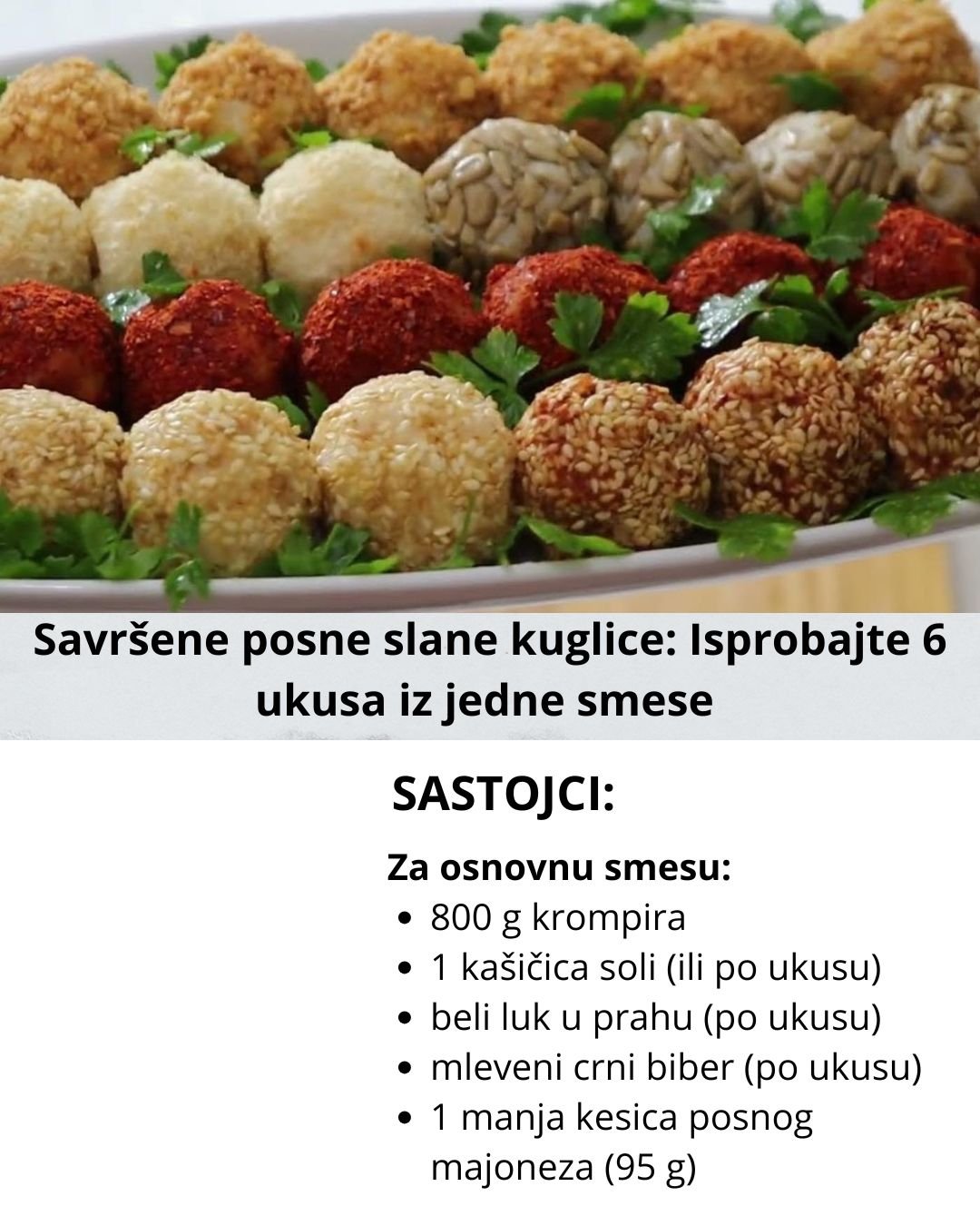 Brze, posne slane kuglice, 6 vrsta od jedne smese.