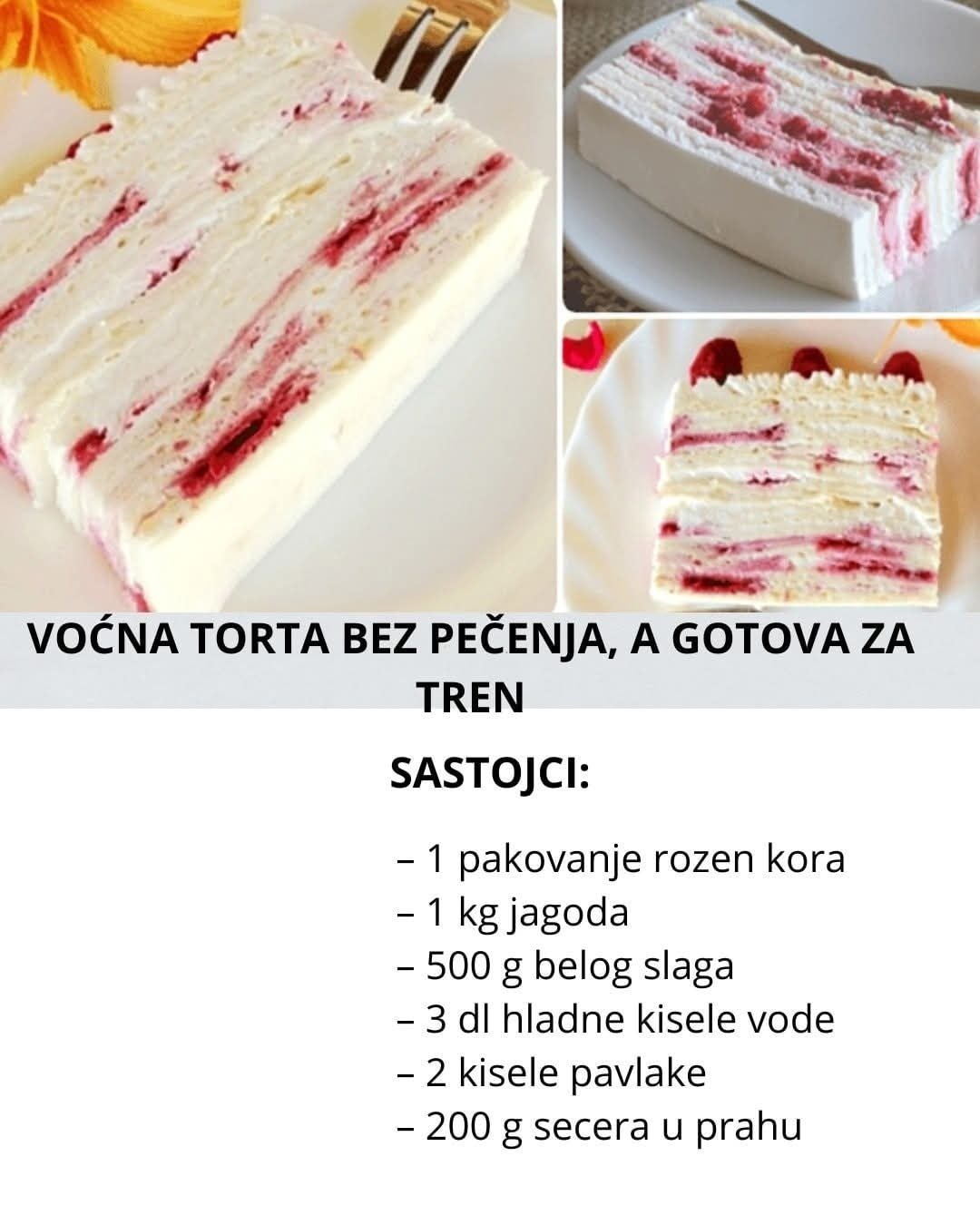 Rezultat je lagana, kremasta i osvežavajuća voćna torta koja se topi u ustima, a priprema traje minimalno vremena. Savršena je za posne dane, goste ili kada ti zatreba brzi desert koji uvek oduševi.