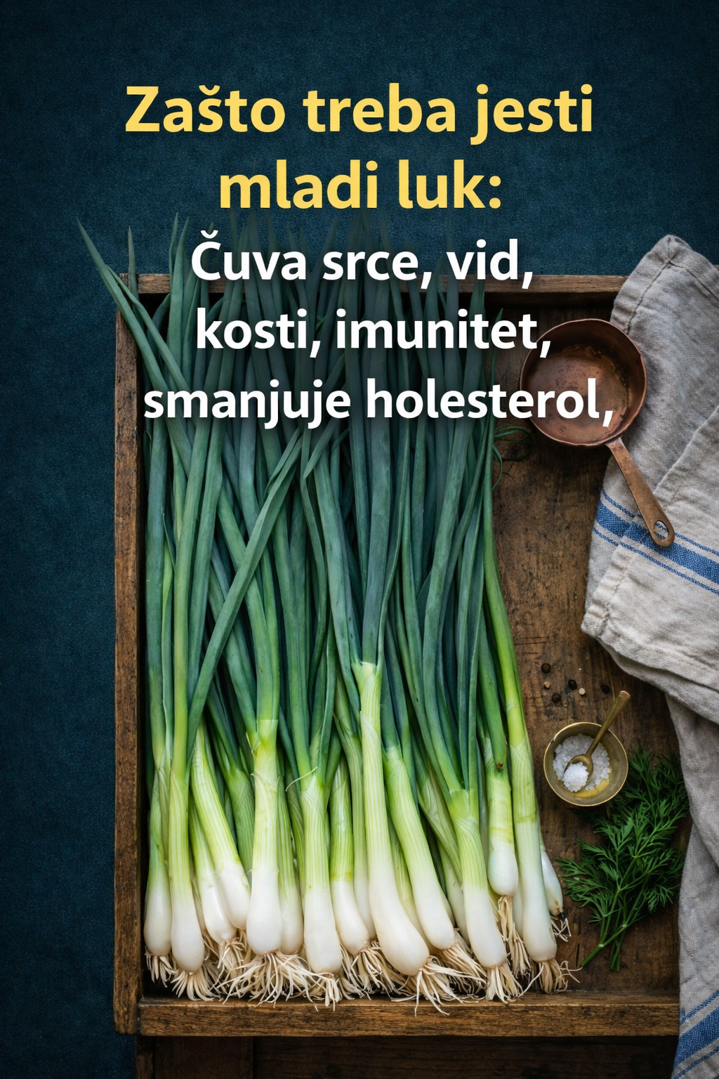 Mladi luk ima veliki broj supstanci koje snižavaju loš holesterol u krvi. Njegov zeleni deo veoma je zdrav i, pored toga što pomaže da se smanji holesterol, dobar je i za vraćanje povišenog šećera u normalu.